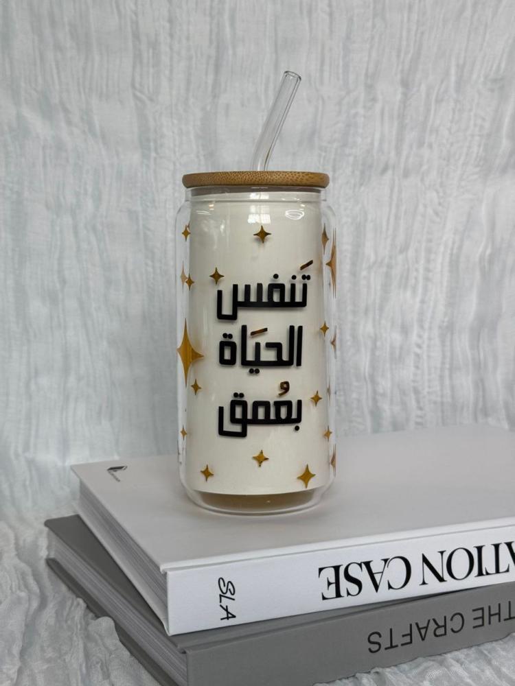 مع غطاء خشبي ومصاص للمشروبات الباردة المنعشة 🍹